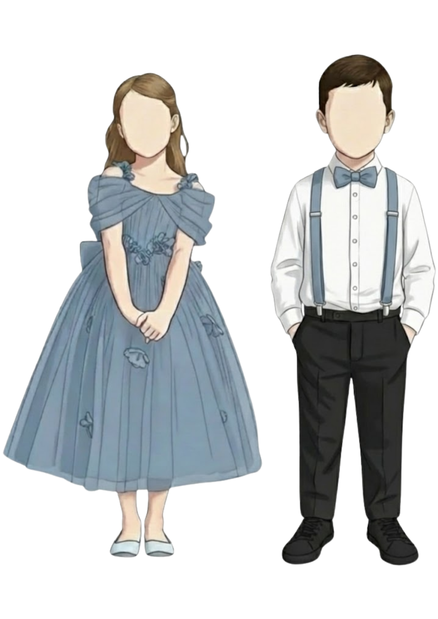 Bearer: Dusty blue suspender with bow tie longsleeve white and black pants