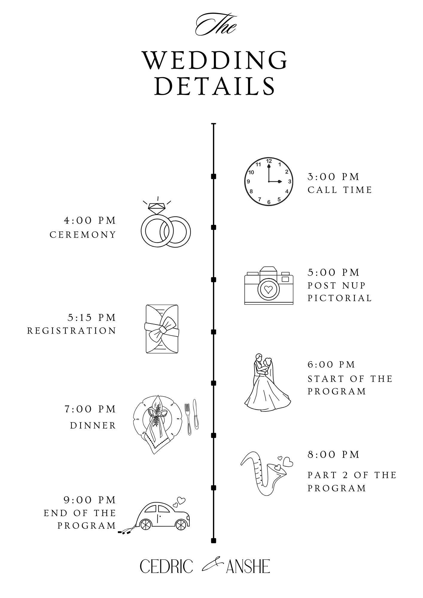 We are so excited to share this special day with you! Here, you’ll find all the details about our wedding day, including venue locations, event schedules, and more.