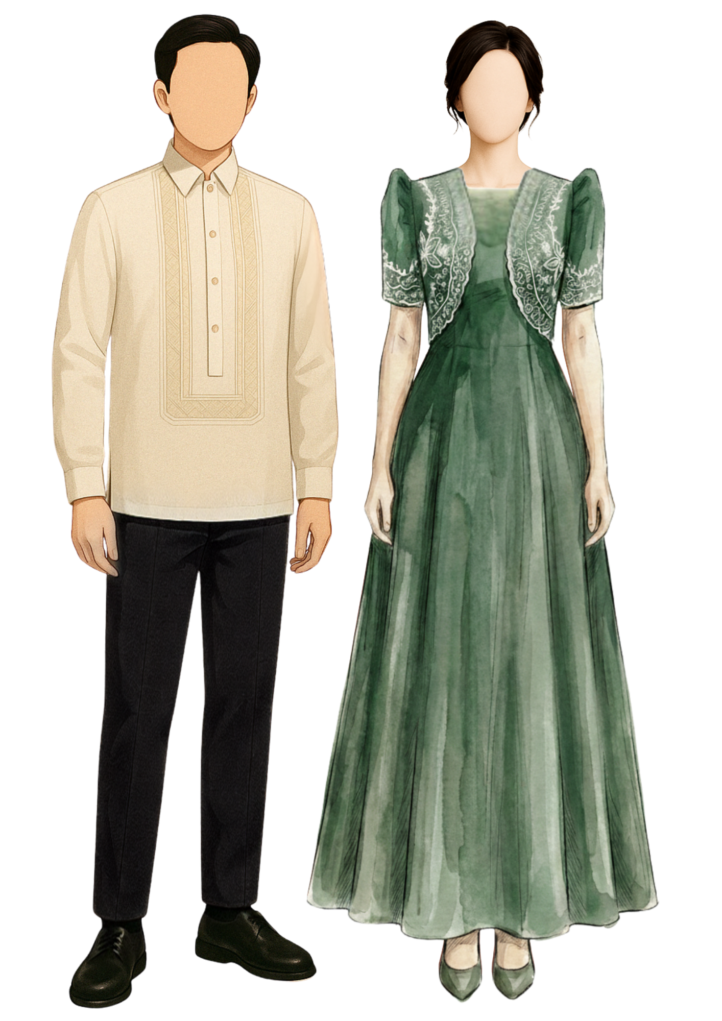 Maid of honor - emerald green WITH FILIPINIANA BOLERO