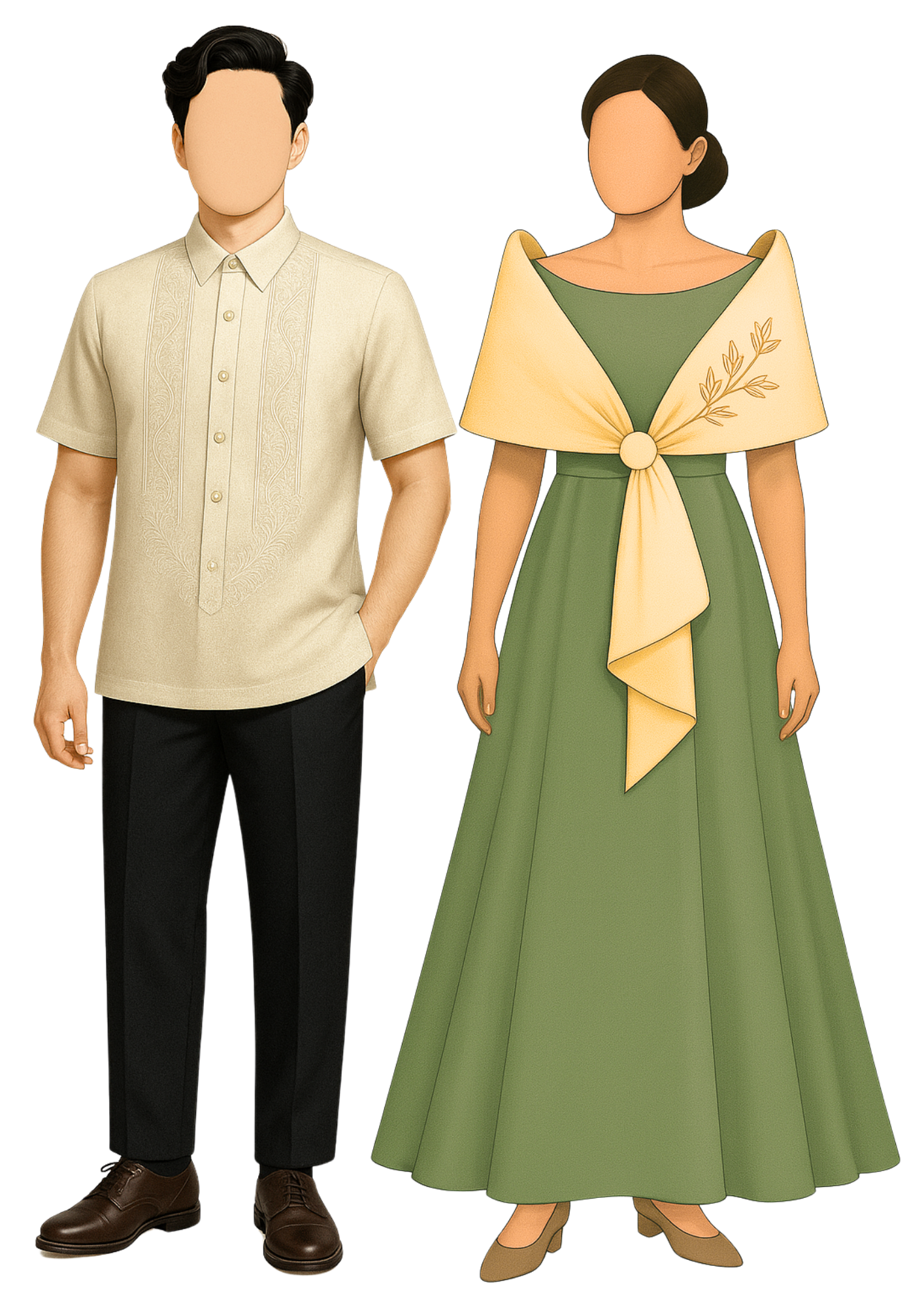 Bridesmaids - sage green with filipiniana alampay