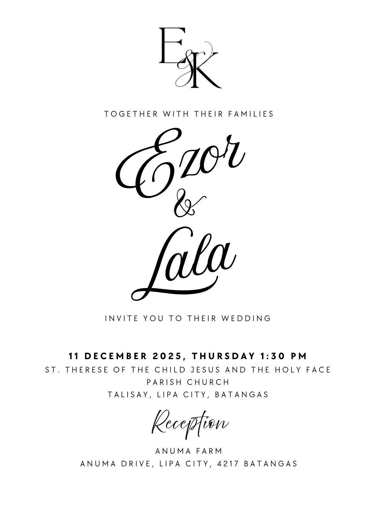 We are so excited to share this special day with you! Here, you’ll find all the details about our wedding day, including venue locations, event schedules, and more.