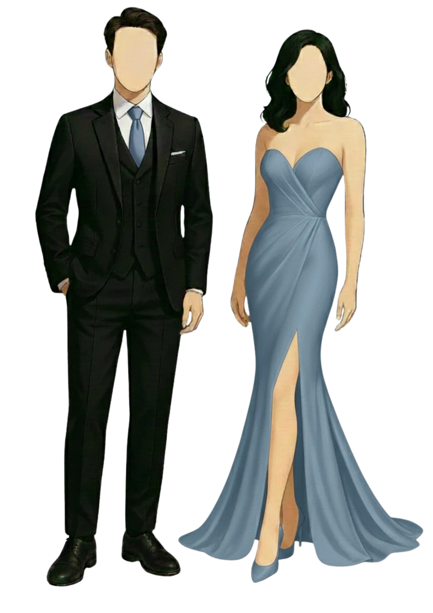 Gentlemen - Black Coat and Pants, White Inner Long Sleeves, Dusty Blue Tie