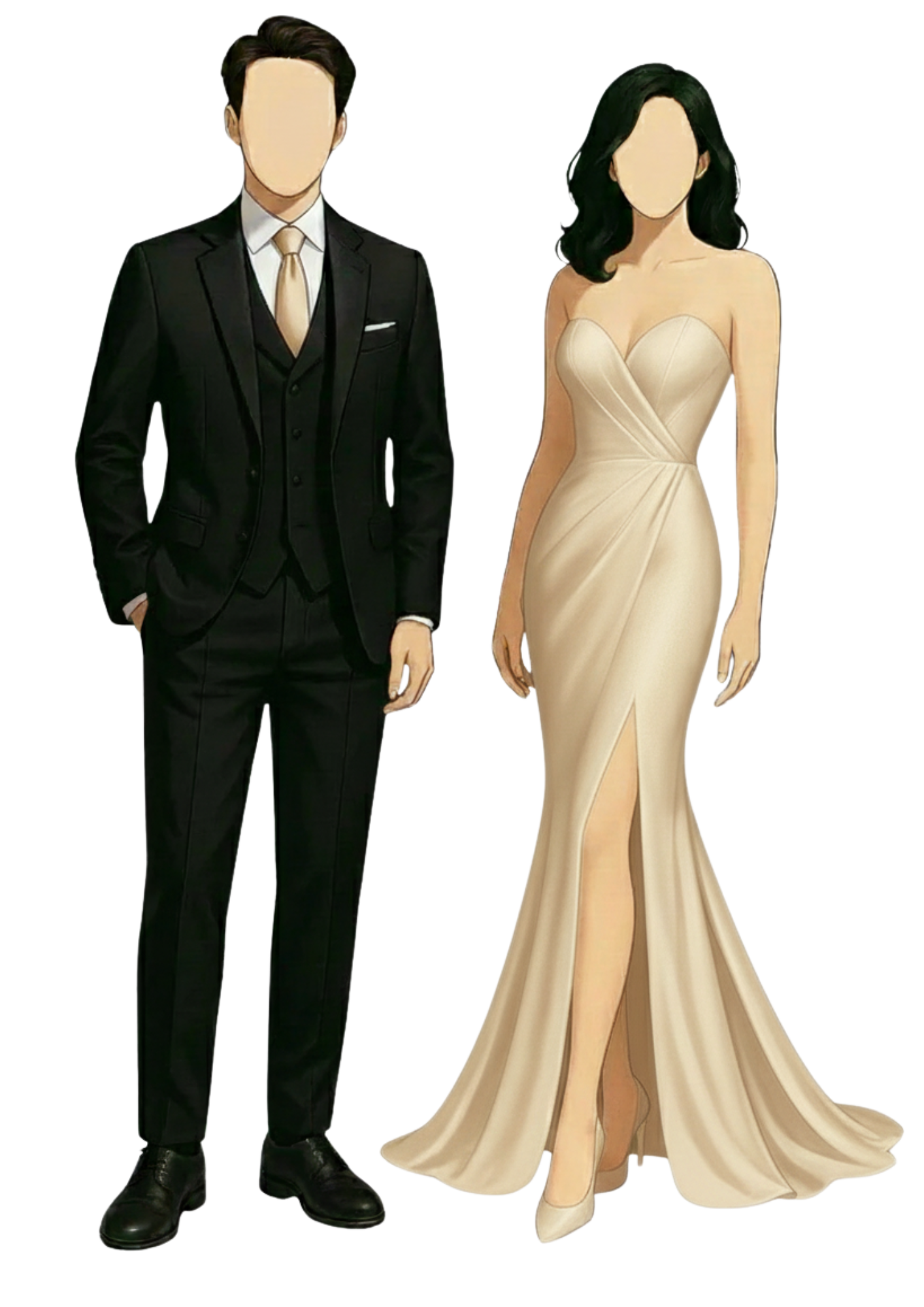 Gentlemen - Black Coat and Pants, White Inner Long Sleeves, Champagne-colored Tie