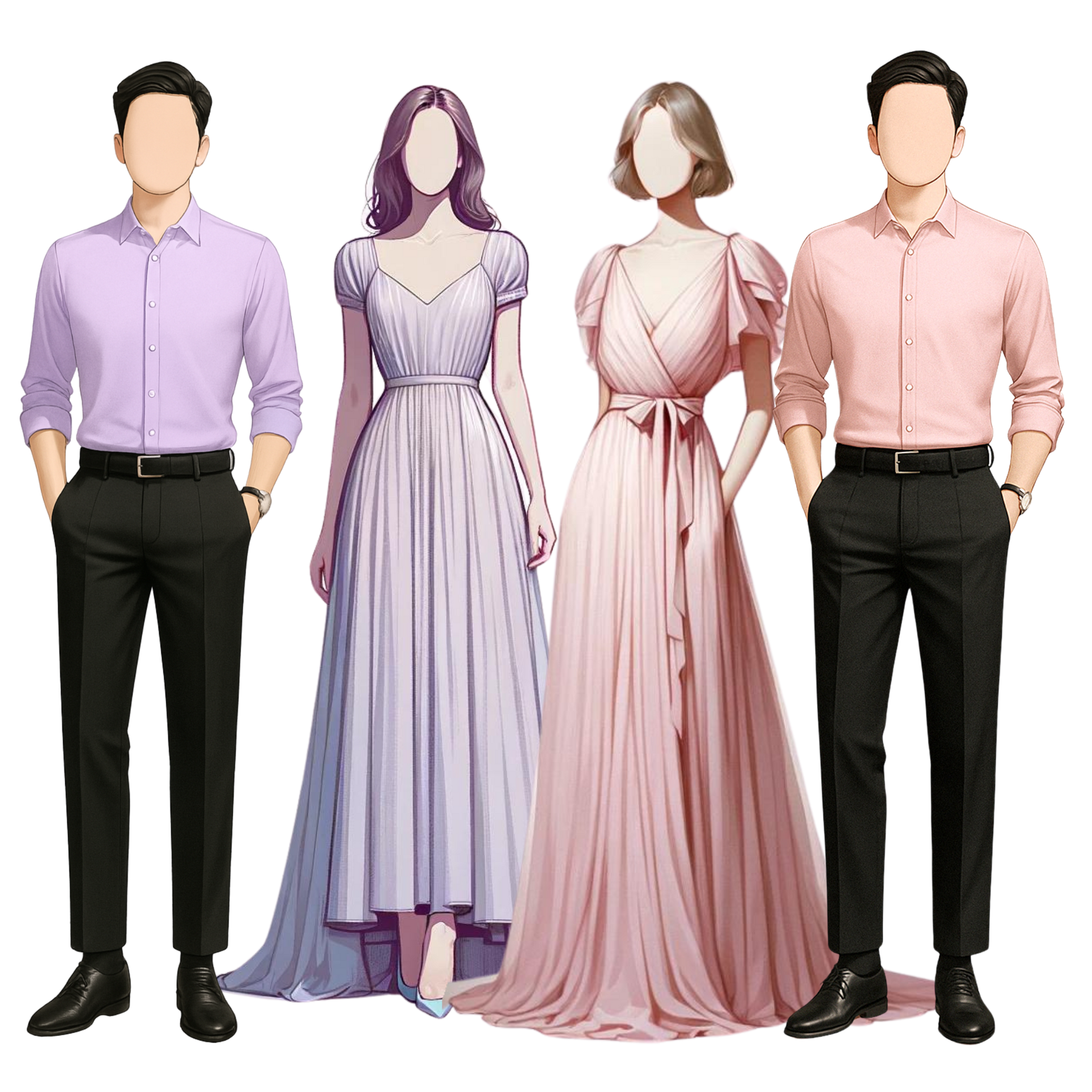 LADIES: LILAC, PURPLE, PINK, GOWN OR LONG DRESS (Please do not wear white)