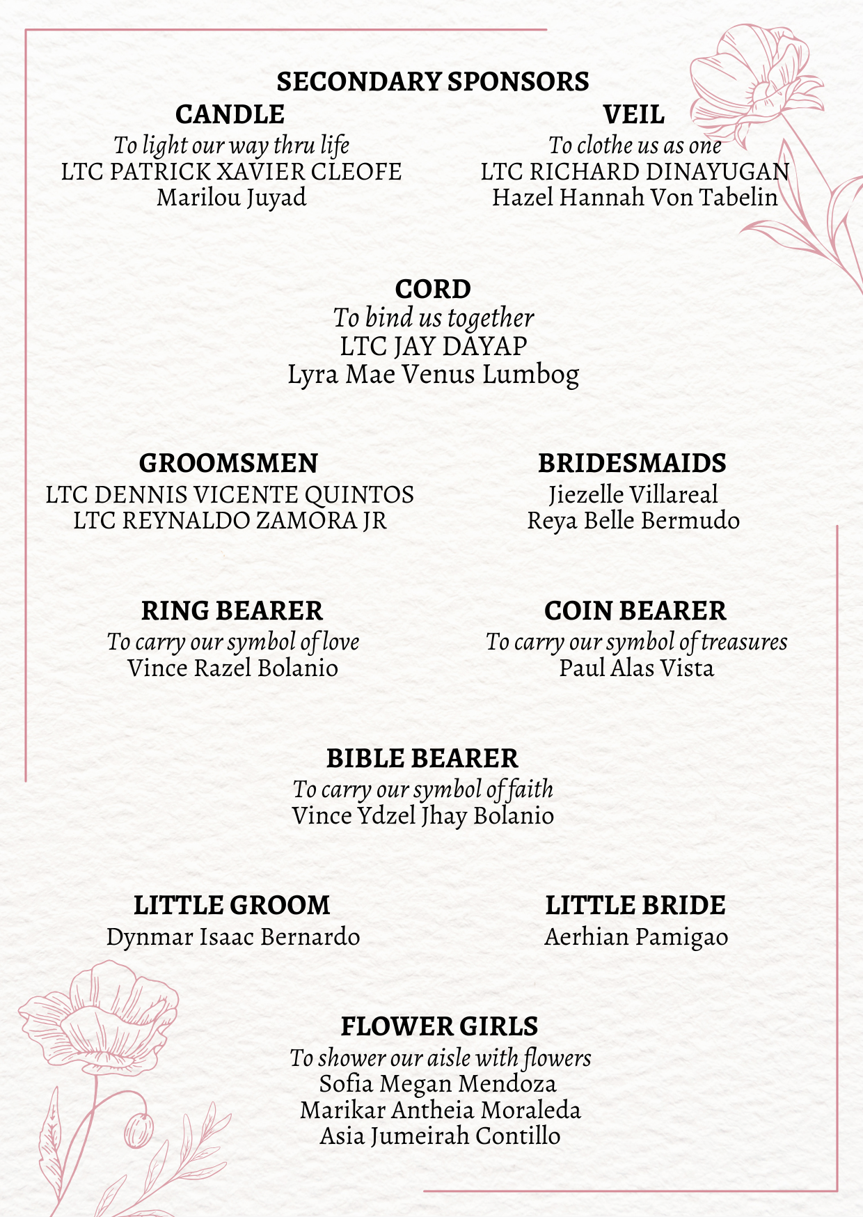 Please adhere to the specified dress code and color motif provided. Dressing accordingly is deeply appreciated, as it will contribute to the elegance and harmony of our celebration.