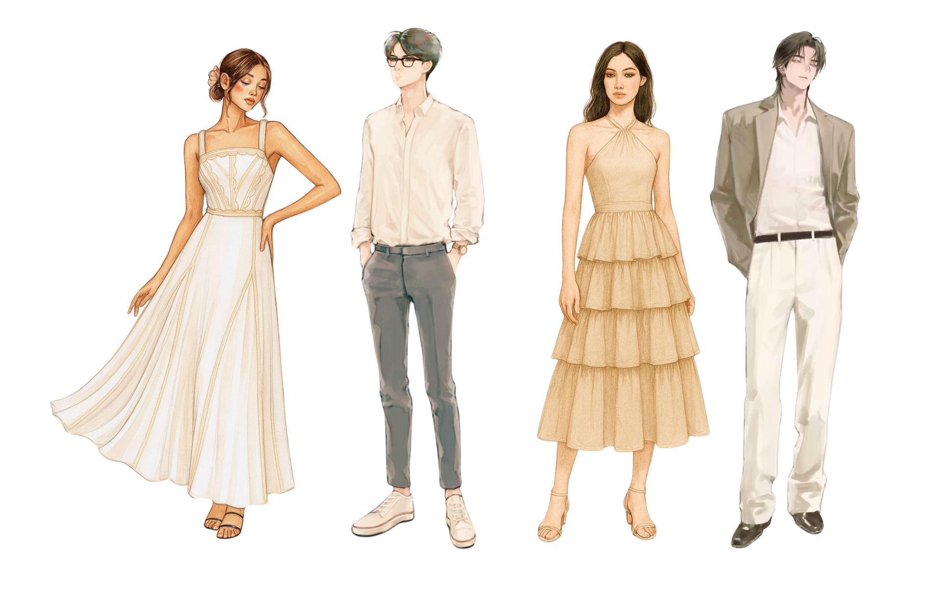 Ladies: Tea- or ankle-length dress, or a blouse paired with slacks.