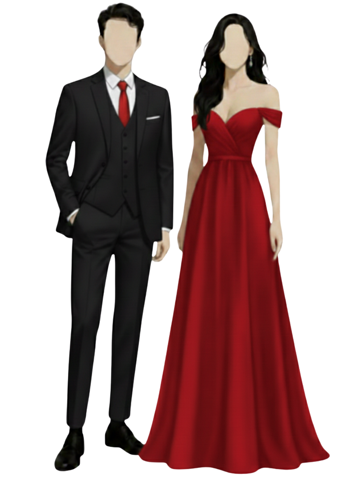 Ninong: Black Suite, White long sleeves for inner and black pants (Red Necktie)