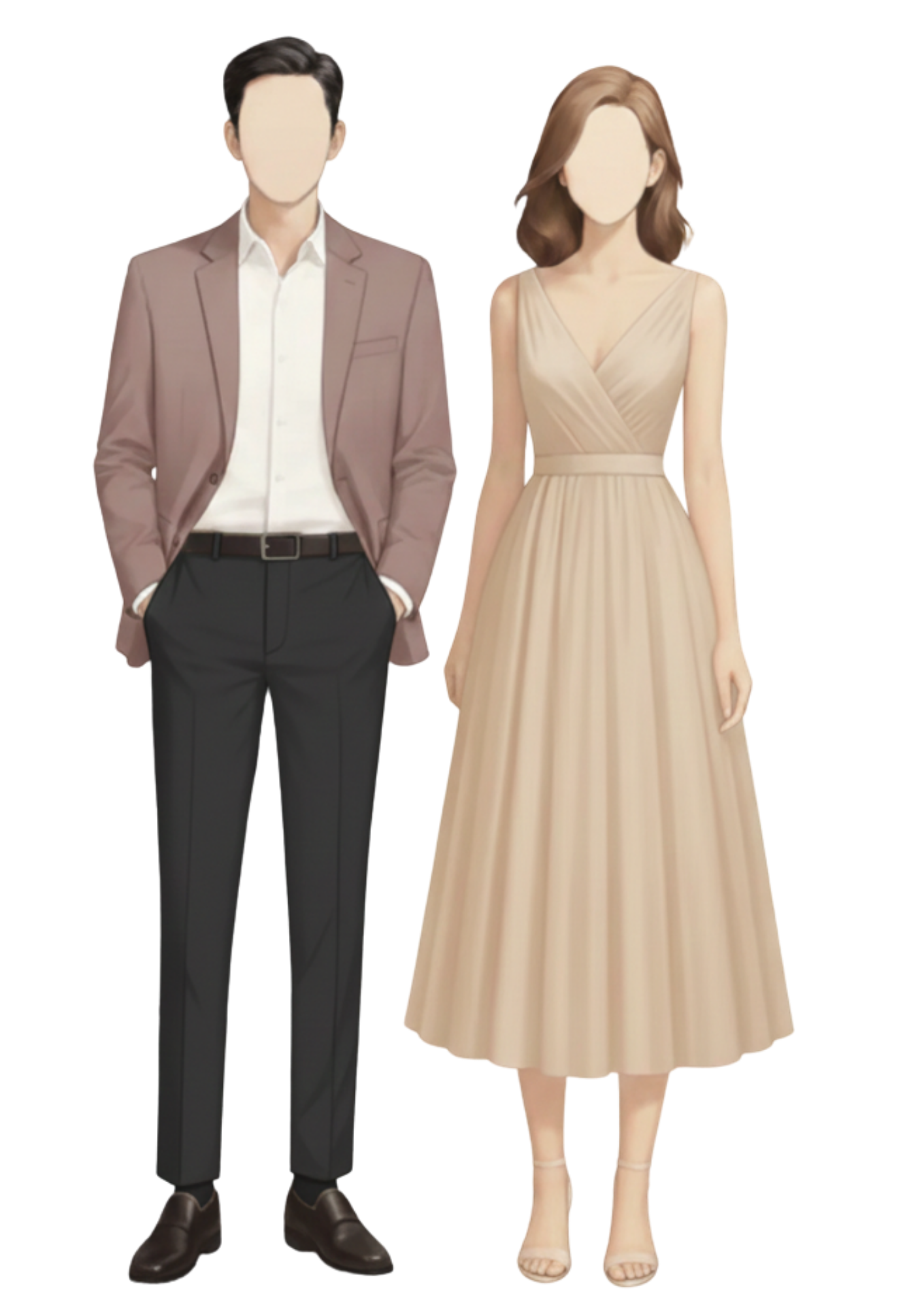 Gentlemen: Suit, Polo or Long Sleeves in any of the color palette below and slacks (no to jeans)