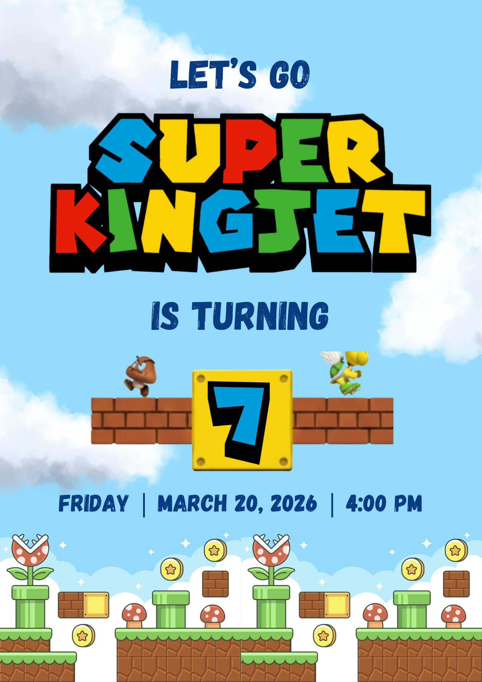 It’s-a me! With power-ups of joy and a heart full of excitement, I’m inviting you to celebrate my 7th birthday adventure! 🎉🍄