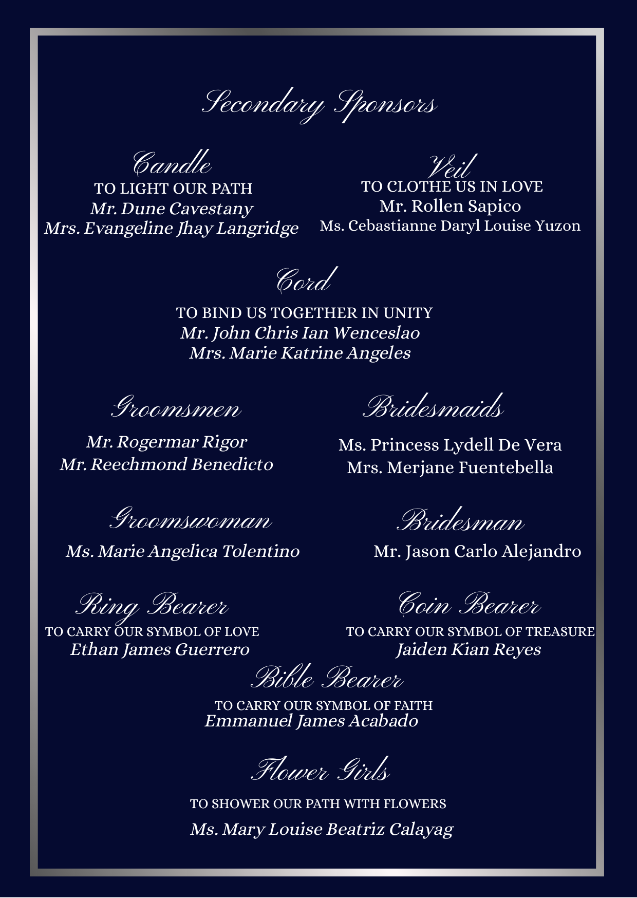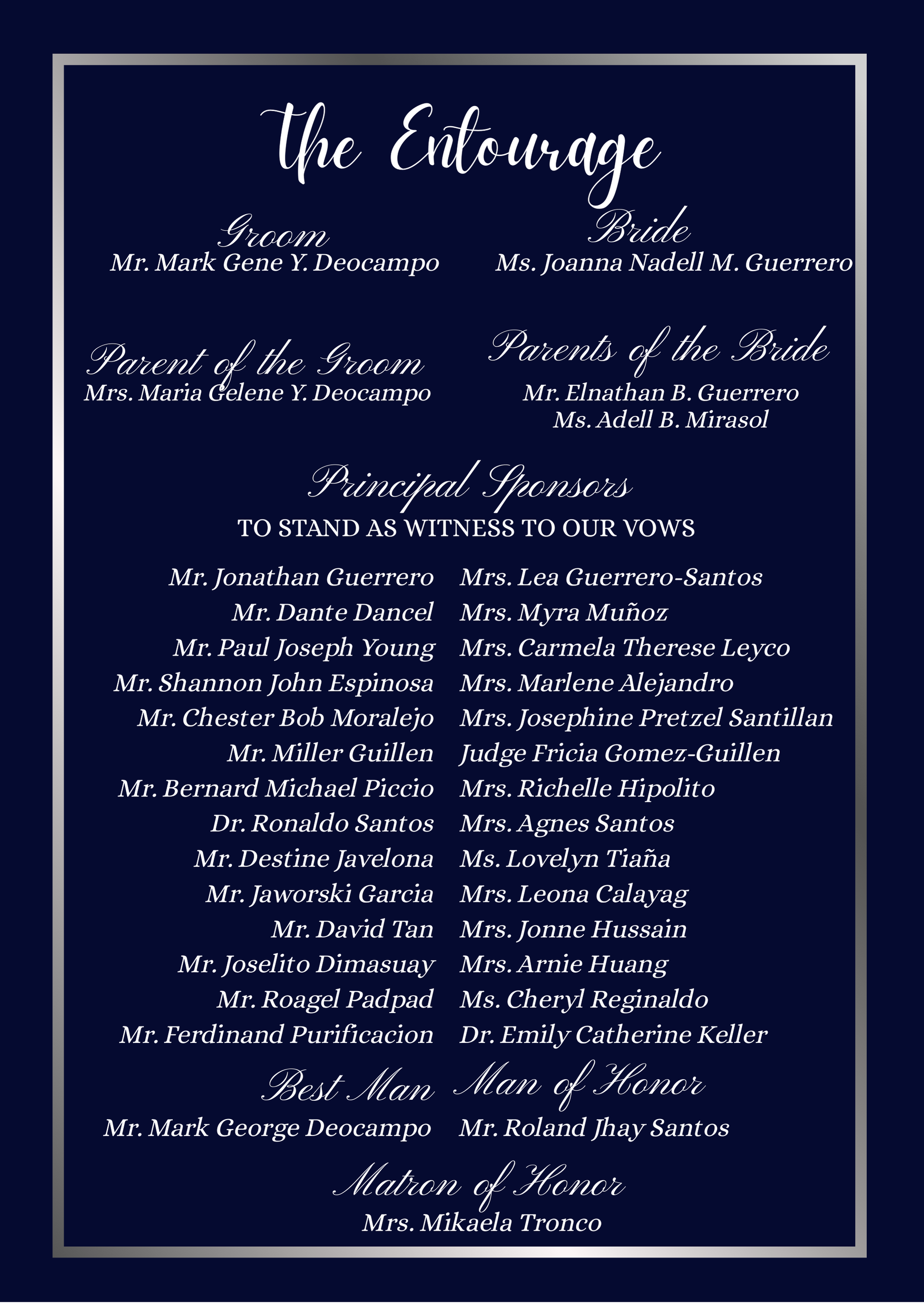 Ninong: Black Suit with a tie according to the color palette.