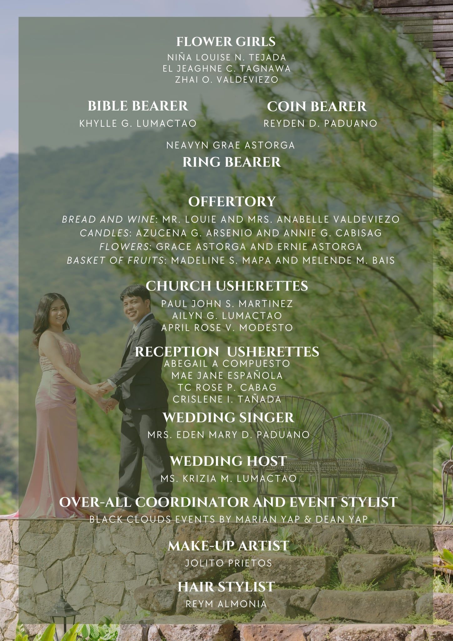 We are so excited to share this special day with you! Here, you’ll find all the details about our wedding day, including venue locations, event schedules, and more.