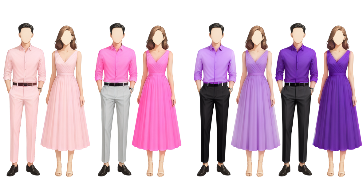 Note: please avoid wearing white, this color is reserved for the bride.
