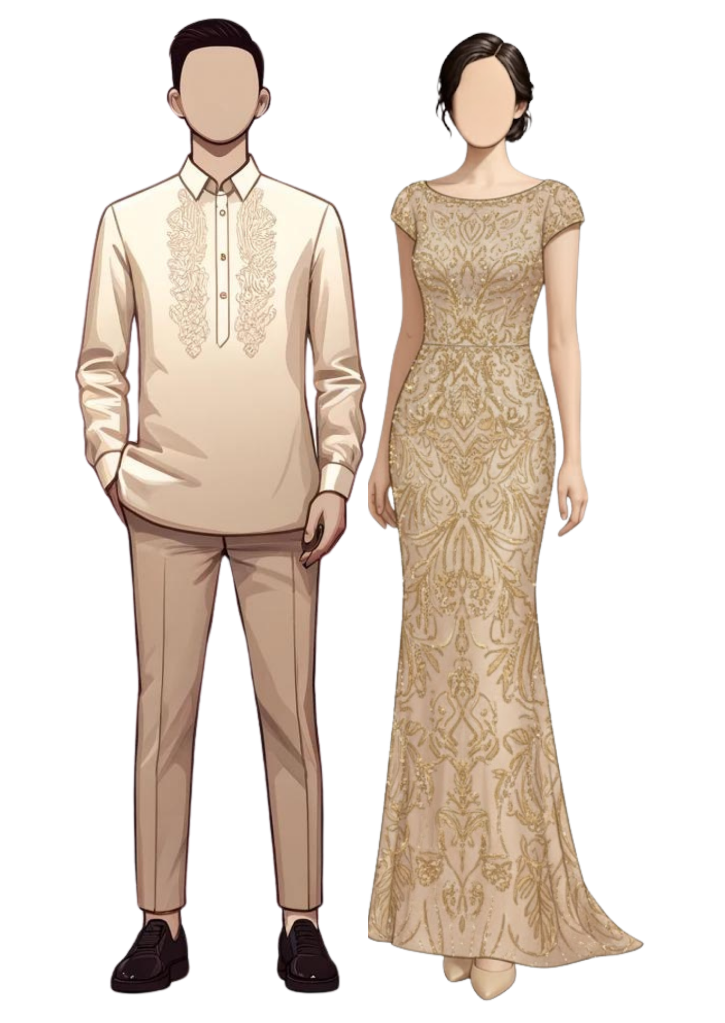 Ninang: Formal Gown in Cream with touch of Gold accent