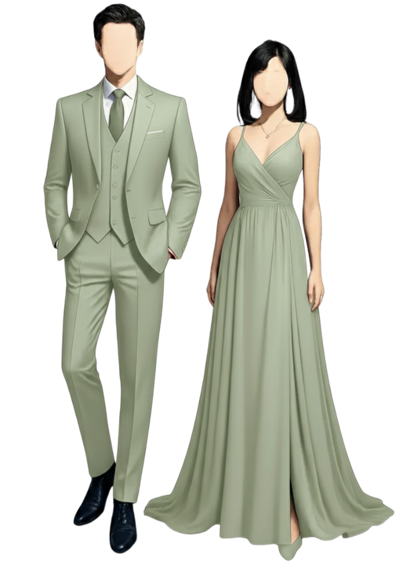 Ladies: Floor-length gown in the shade of Sage green
