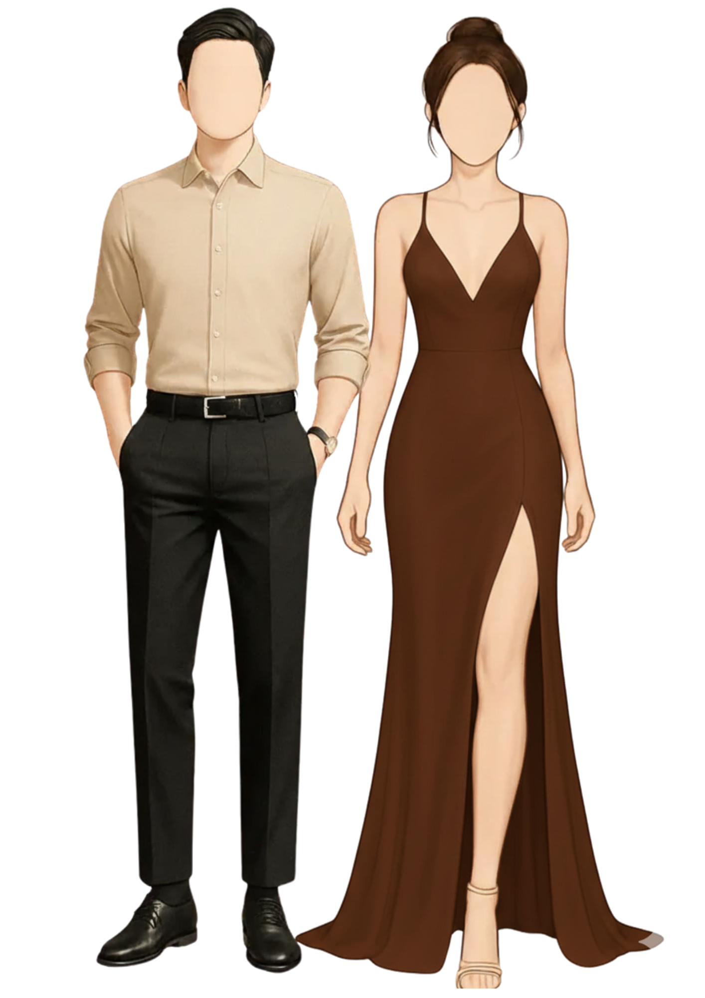 Ninang: Modern Filipiniana Attire or Long Gown any shade of nude, champagne or beige