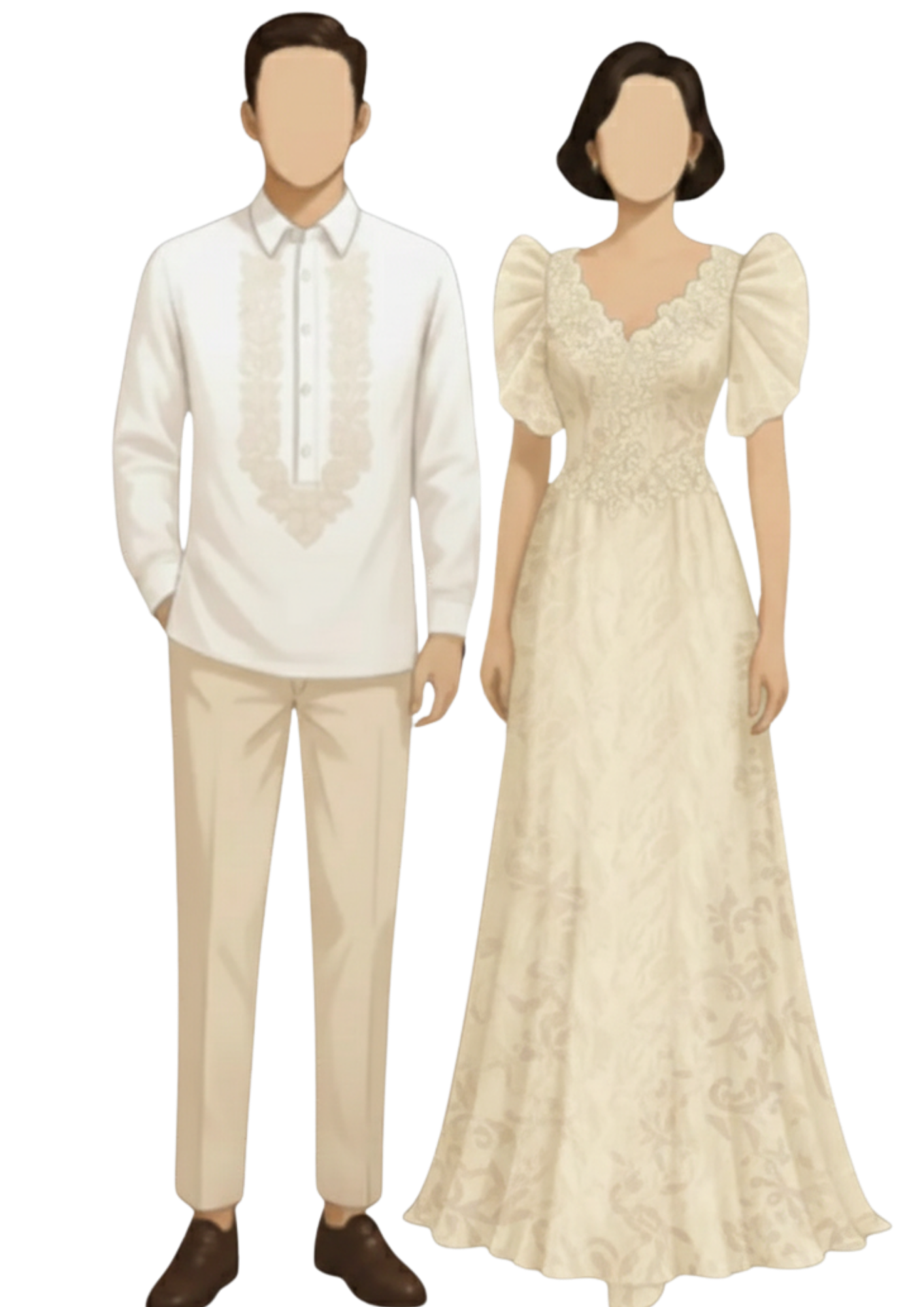 Men: Traditional barong (one with collar) – kindly illustrate