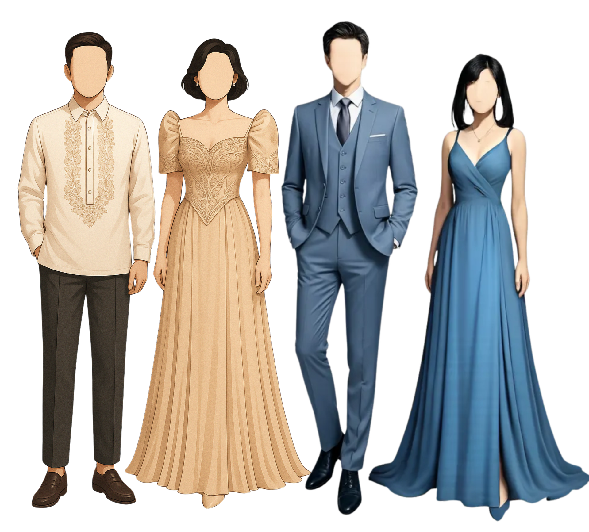 Ninang Dusty blue long gown/ Cream formal dress