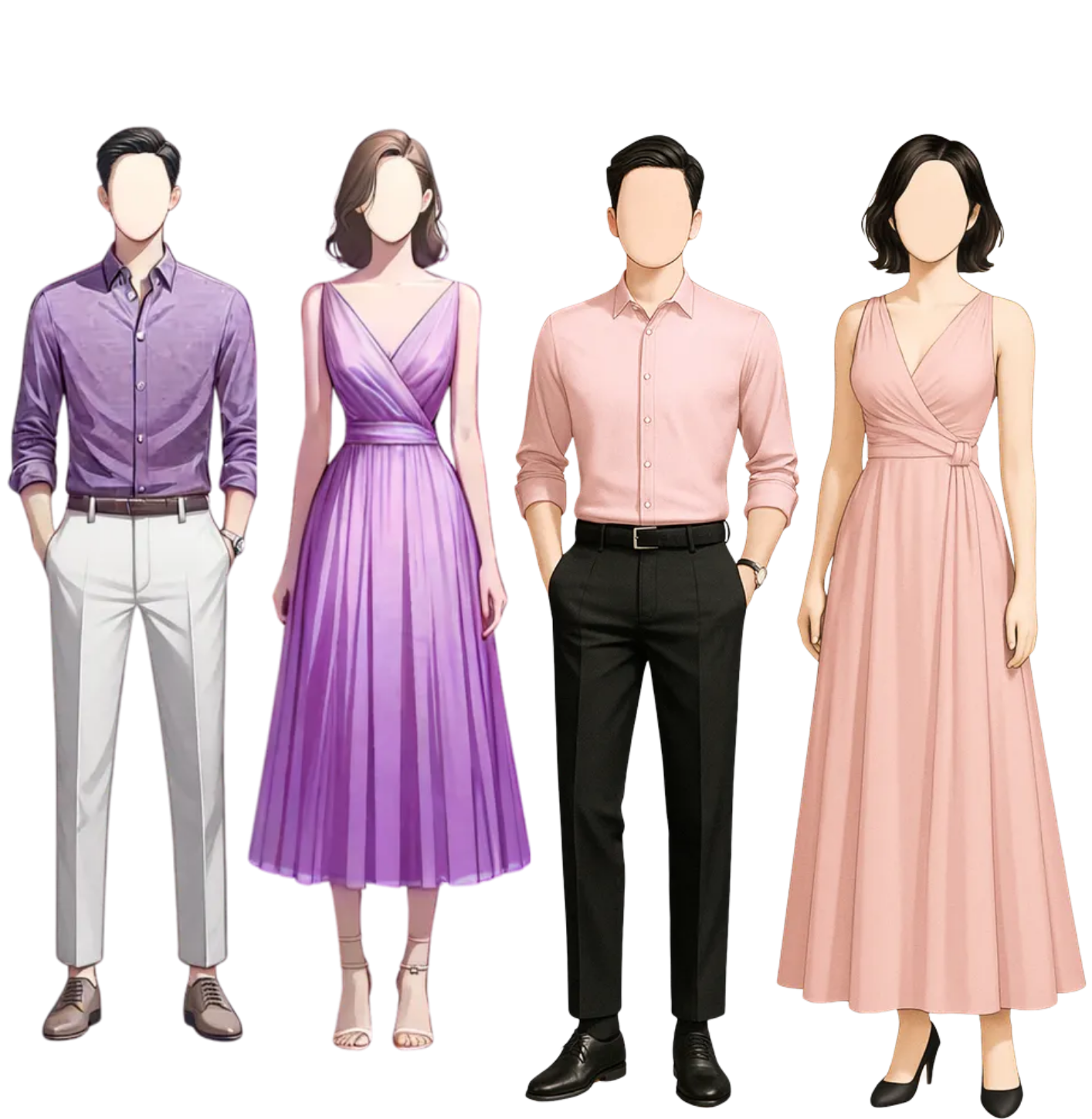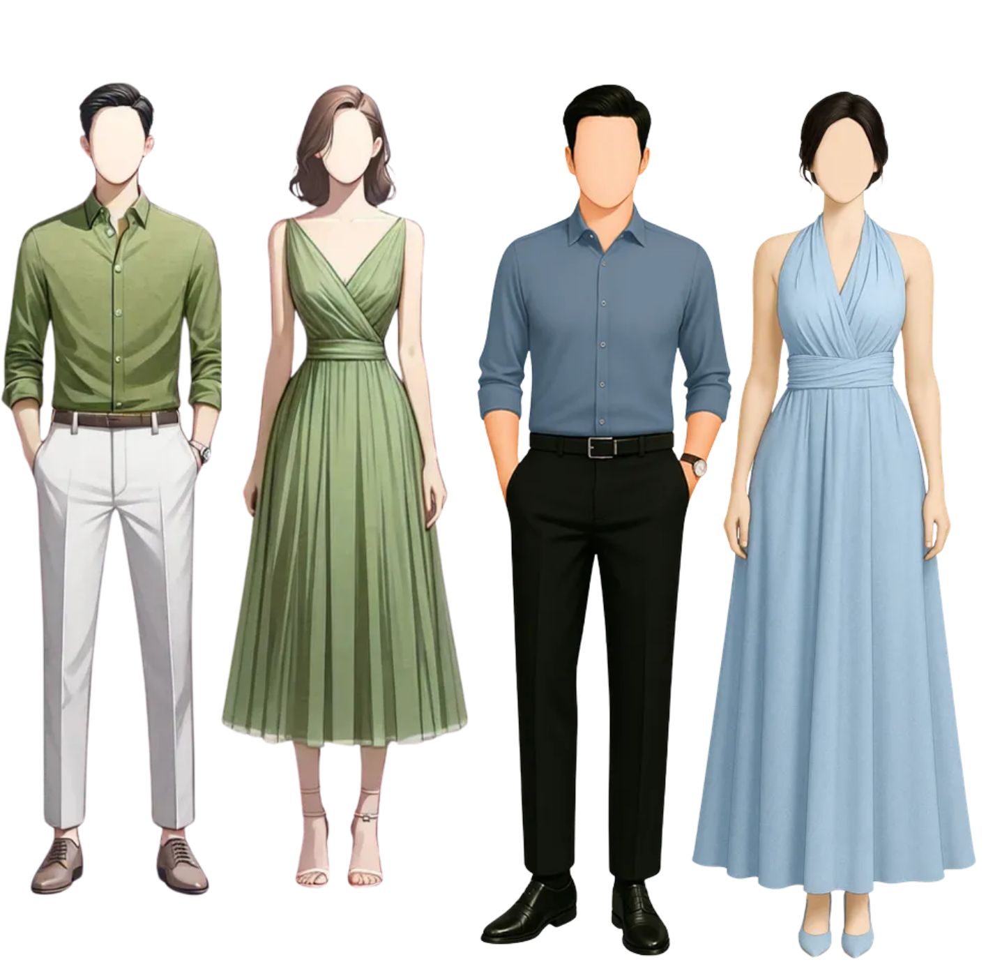 semi-formal attire, in shades that harmonize